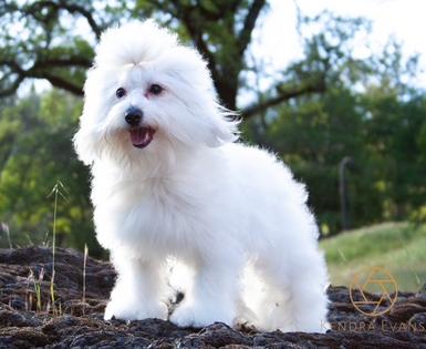 Cosmo is the sire of our puppies. He is also available to stud. Cosmo is a very friendly, loving, and outgoing boy. He has passed all of his health testing. He is all white. His lack of color certainly does not match his vibrant personality. Cosmo is fun, loving, gentle with small children and loves to be the center of attention.